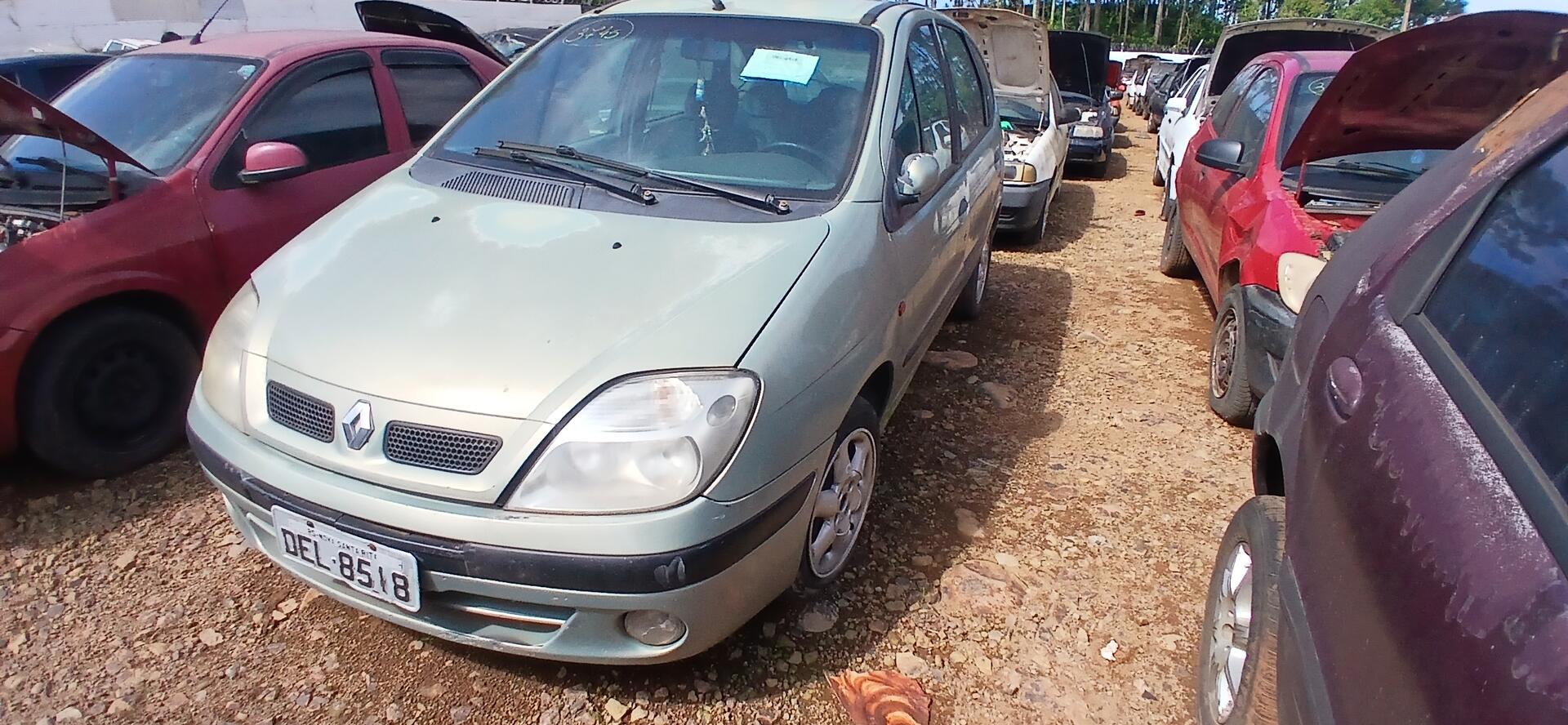 CRD: CRD00243, Placa: DEL8518, Chassi: 93YJA1D351J278267, Marca/Modelo: RENAULT/SCENIC RXE 2.0, Cor: Bege, Ano Fab/Mod: 2001/2001, Situação do Motor: Servível, Renavam: 766897613
