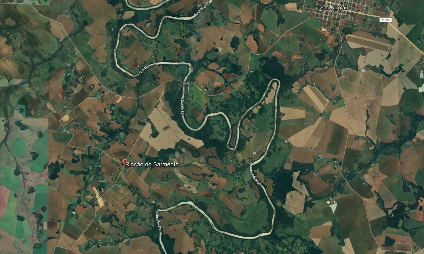 ÁREA RURAL DE 3ha20a41ca90da, dentro de área maior descrita como uma fração de terras para cultura, com área de 36ha, sem benfeitorias, situada no lugar denominado Rincão do Sarmento, município de São Nicolau, confrontando, ao Norte, com terras de José Lucas Torres e sucessores de João dos Santos Moura; ao Sul, com terras de Juvenal Domingos de Oliveira e Homero Gomes de Oliveira; ao Leste, com o Rio Piratini, e, ao Oeste, com terras de Simão José de Oliveira e com campos de José Lucas Torres. Imóvel descrito na matrícula nº 23.471, R-23, do Cartório de Registro de Imóveis de São Nicolau.